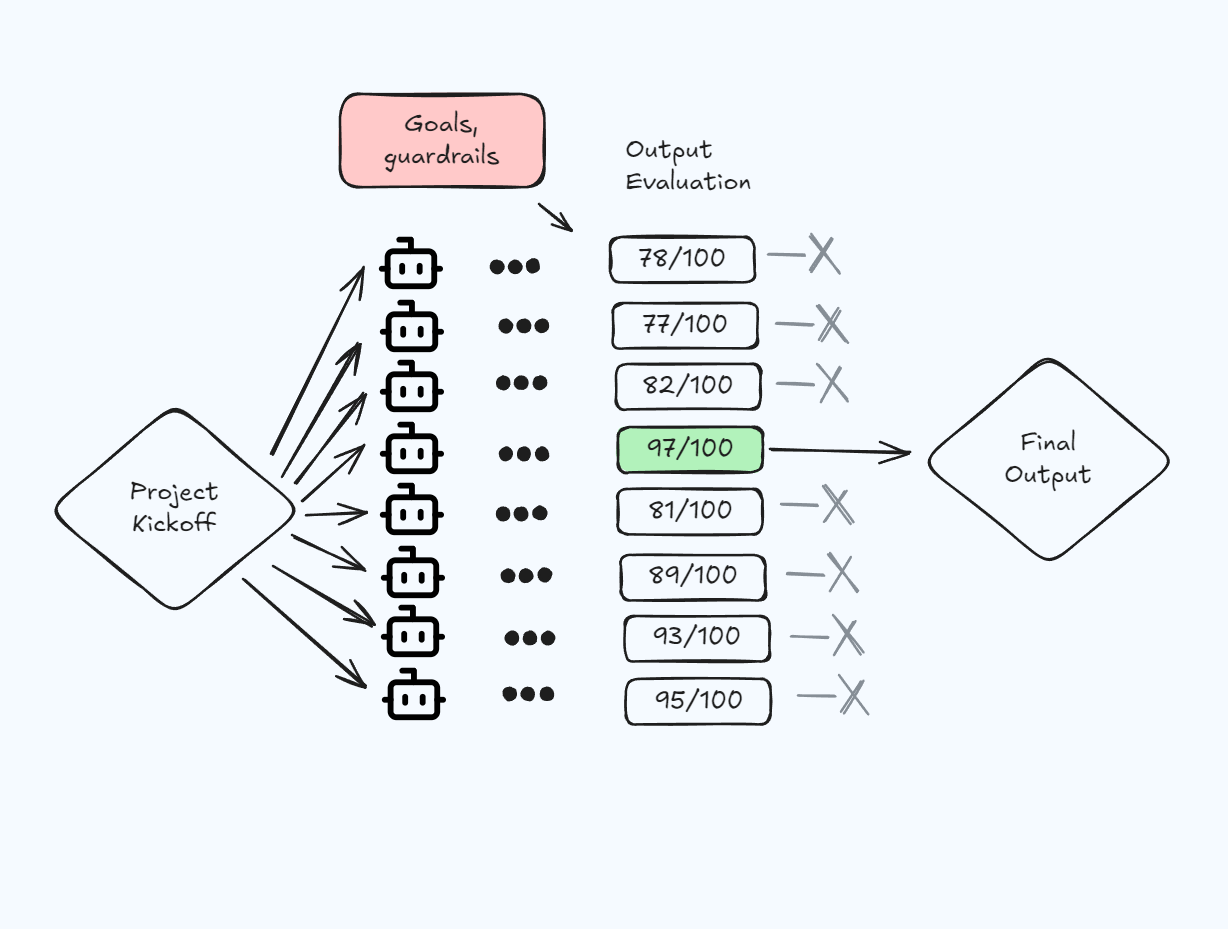 In practice, this looks like a founder kicking off 30 variations of a landing page, a growth team testing 100 outreach sequences, or an engineering lead exploring multiple architectural approaches before committing. The experiments that would take quarters now take days.